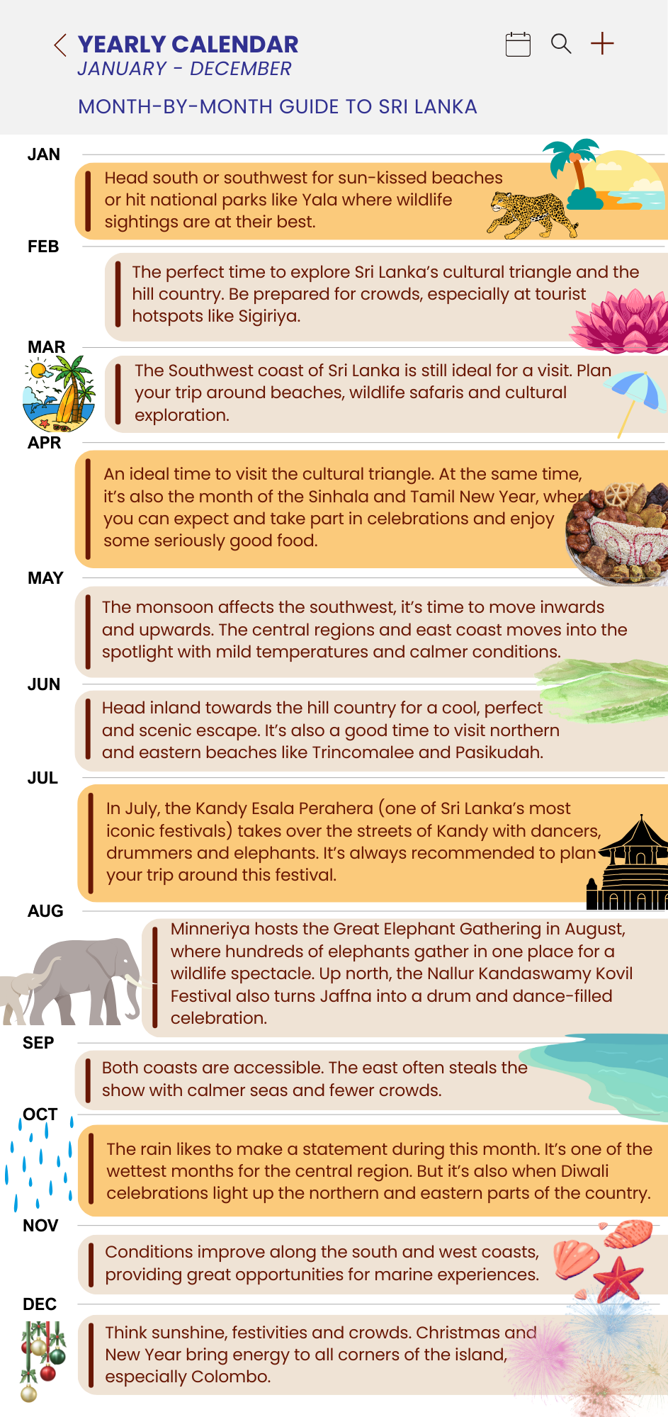 Long (and more helpful answer)? Sri Lanka is one of those rare destinations where there’s always someplace good to be, but for the best time of your life - visiting times and your interests need to align.